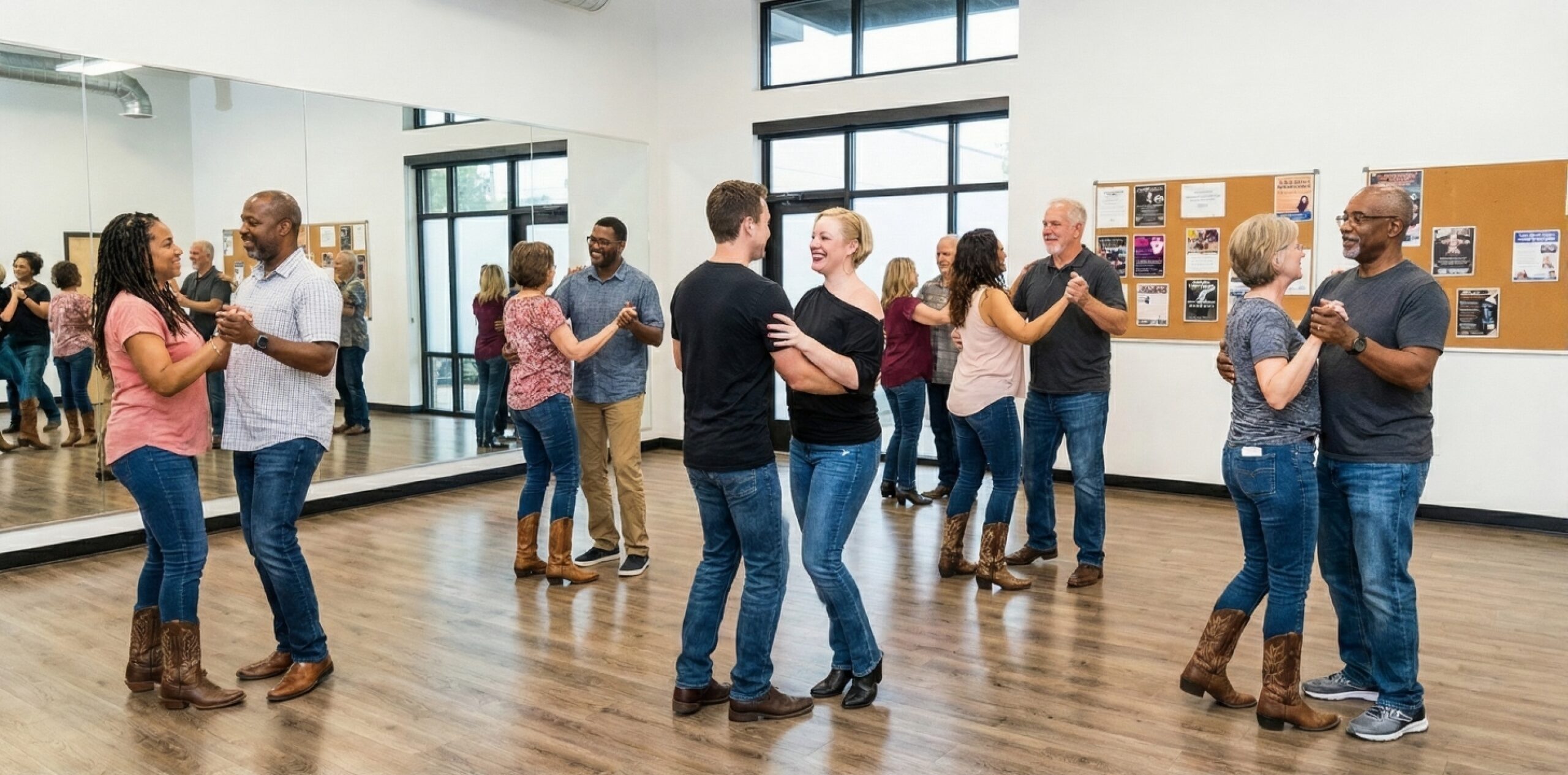 You don't need a partner to join—we rotate frequently so everyone gets a chance to dance. Wear comfortable shoes (smooth soles or boots are best for sliding/gliding) and come ready to have a blast.